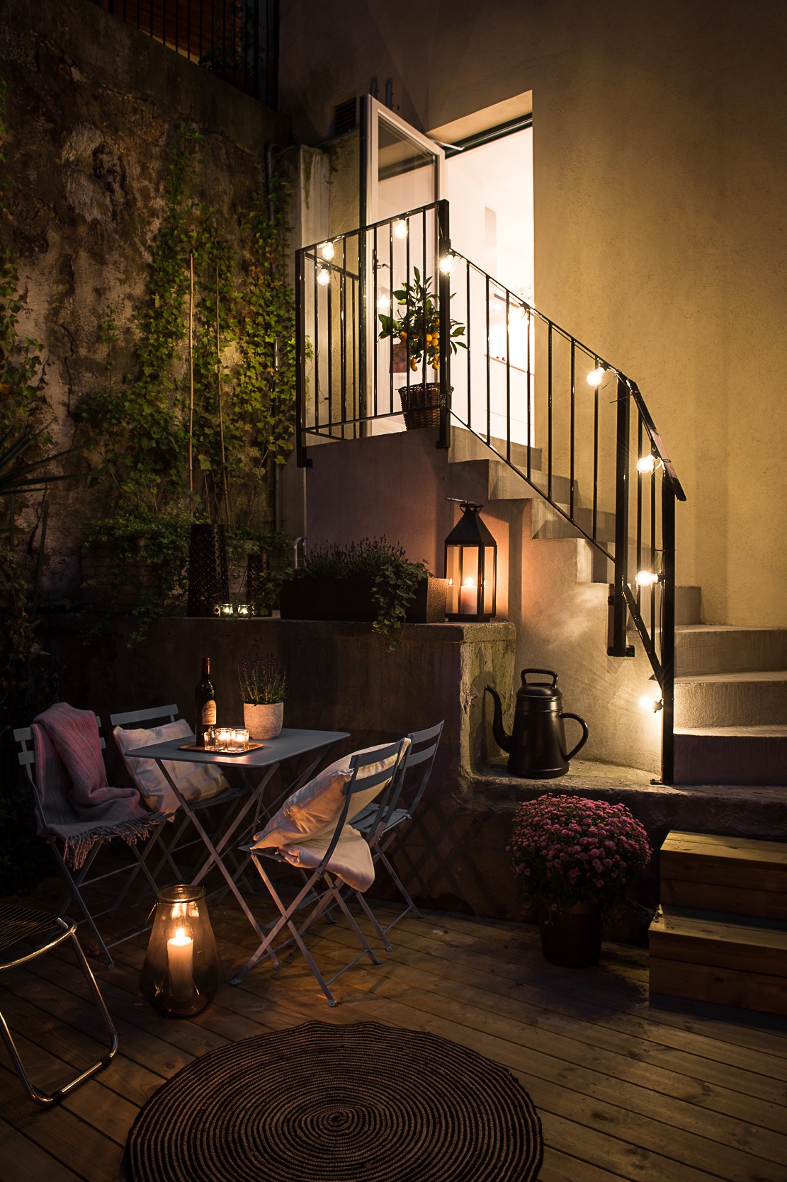 Från köket finner vi utgången till den vackra stentrappan som leder ner till terrassen om ca 15 kvadrat. Här går det med enkelhet att möblera upp med loungemöblemang och övriga attiraljer som förhöjer känslan av att ha en egen oas mitt i centrala Linnéstaden. Låt fantasin flöda med inredningen och bjud in till umgänge och trivsel! Här kan man njuta både av solens strålar och ljumna kvällar.