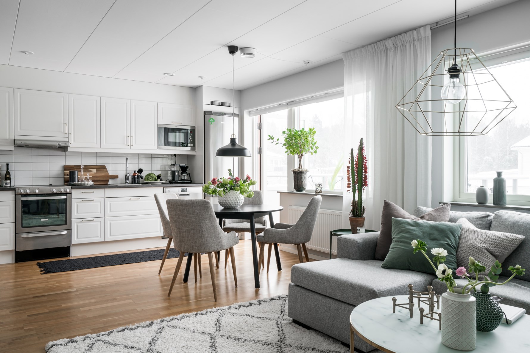 Köksdelen är sammanbunden med vardagsrummet i öppen luftig planlösning,