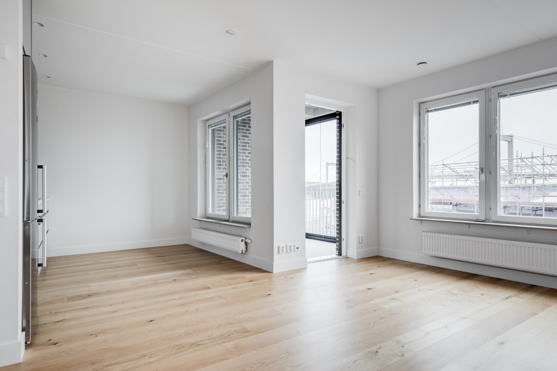 Trivsamma sällskapsytor i öppen planlösning med ljusinsläpp från generösa fönsterpartier samt utgång till lägenhetens balkong med utsikt mot hamninloppet och Älvsborgsbron.