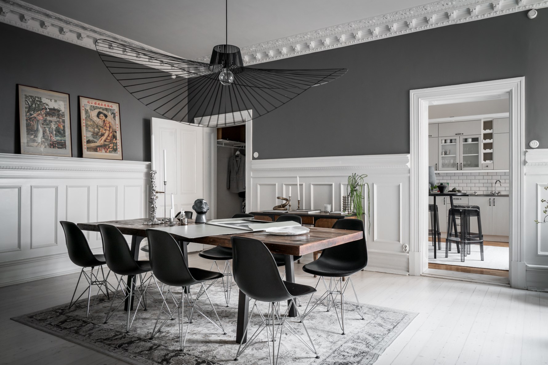 Bostadens andra allrum används även idag som vardagsrum med gott om utrymme för en soffgrupp där ni kan sjunka ner efter det att ni är mätta och belåtna. Rummet går även utmärkt att använda till ett sovrum. Även här har ni lyxen att ha en vacker kakelugn som sprider en härlig mysfaktor under de mörka årstiderna. Rummet får ett behagligt ljusinsläpp från två stora fönsterpartier med djup fönsternisch som tillsammans med de ståtliga takstuckaturerna ger karaktär till rummet. Brädgolvet i original återfinns här tillsammans med den vackra färgen på väggarna.