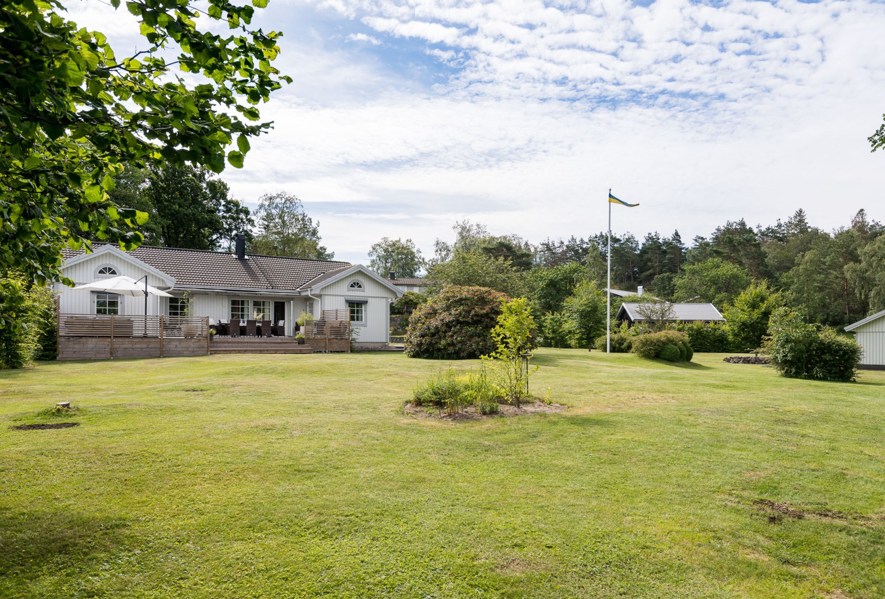 Vi fortsätter in i vardagsrummet där braskaminen ger rummet karaktär och värme. Här finns plats för soffgrupp samt TV. Intill vardagsrummet ligger ett rum som idag används som matsal men här kan man göra ett extra sovrum vid behov. Parkettgolv. Från vardagsrummet kommer man direkt ut på altanens trädäck där man avnjuter den natursköna utsikten i bästa solläge. På altanen finns gott om plats för matgrupp och loungemöbler och här trivs man med familj och vänner.