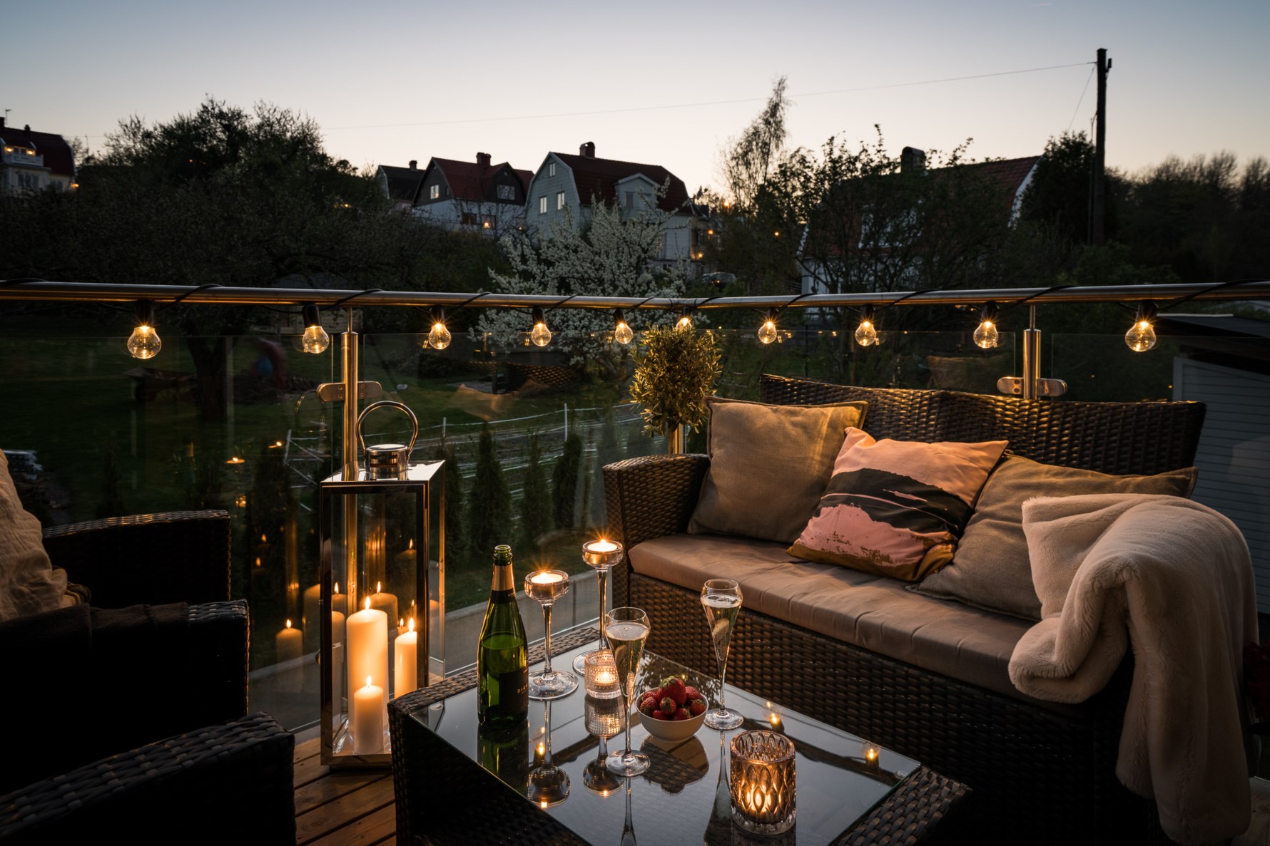 Vardagsrummet bjuder in till möblering med en större soffgrupp, bord och avlastningsmöbel för den som önskar samt ett matbord för minst fyra gäster. Stora fönsterpartier som bjuder på ett härligt ljusinsläpp som reflekteras fint i de ljusa väggarna. Här finner ni även utgången till bostadens härliga balkong i västerläge.