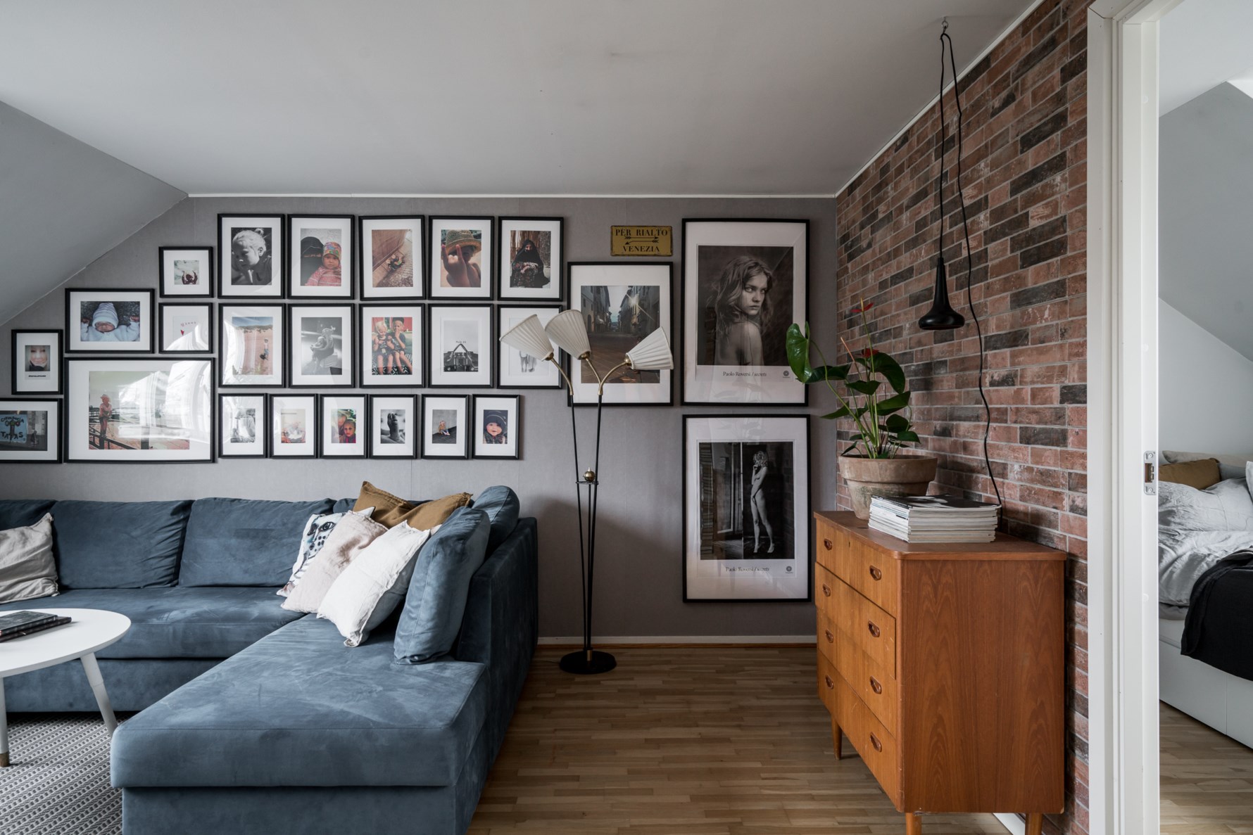 Rymligt vardagsrum med plats för soffgrupp med tillhörande möblemang samt en läshörna om så önskas eller varför inte ett litet kontor. Rummet får ett fantastiskt ljusinsläpp från fönsterna som bidrar till känsla av rymd. Väggarna går i vitt med ett dekorativt stenparti och på golvet ligger parkett.