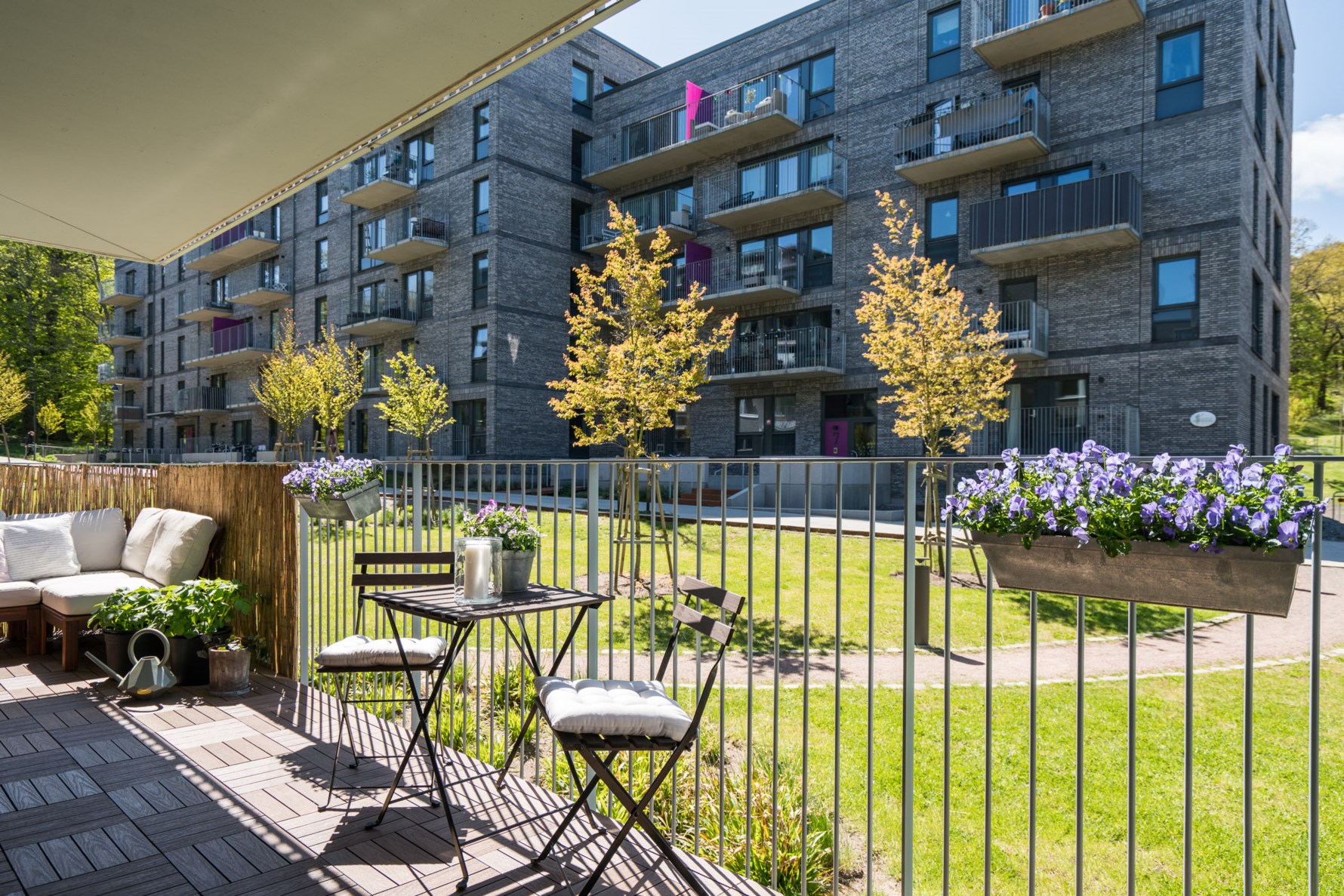 Lägenheten har tre bra sovrum i varierande storlek. Det största sovrummet har plats för en dubbelsäng tillsammans med sängbord och för klädförvaringen står en inbyggd garderob med skjutdörrar i spegelglas som sträcker sig från golv till tak. Det största sovrummet har en fransk balkong och är målat i färgen S2002-Y. De två mindre sovrummen har plats för enkelsäng och skrivbord och passar perfekt som barn-, gäst- eller arbetsrum. Det nuvarande barnrummet är målat i färgen Bright Calais (Nordsjö färg) medan gästrummet är målat i S1502-Y. Även ett av de två mindre sovrummen bjuder på goda förvaringsmöjligheter i en platsbyggd skjutdörrsgarderob.