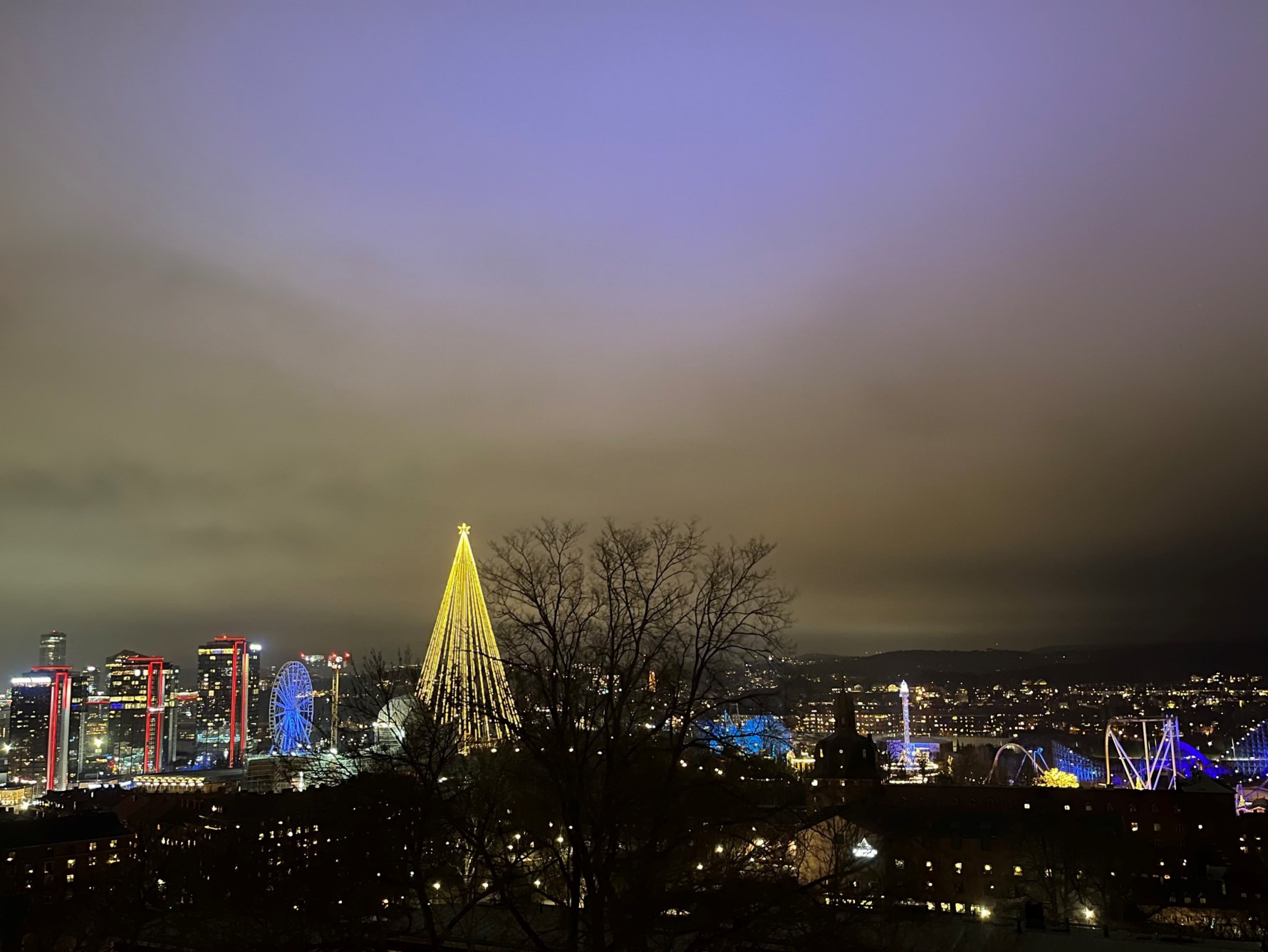 Ljust kök med trivsam matplats invid fönstret som har högt läge och vidsträckt utsikt mot Liseberg, Örgryte och grönskande berg i horisonten. Köksinredning med vita släta luckor som har rostfria beslag, bänkytor i trä samt stänkskydd i vitt kakel. Köket erbjuder goda förvaringsmöjligheter och bra arbetsytor. Den maskinella utrustningen består av hällspis med ugn, fläkt, inbyggnadsmikro samt kyl med frys. Vitmålat golv och vitmålade väggar.