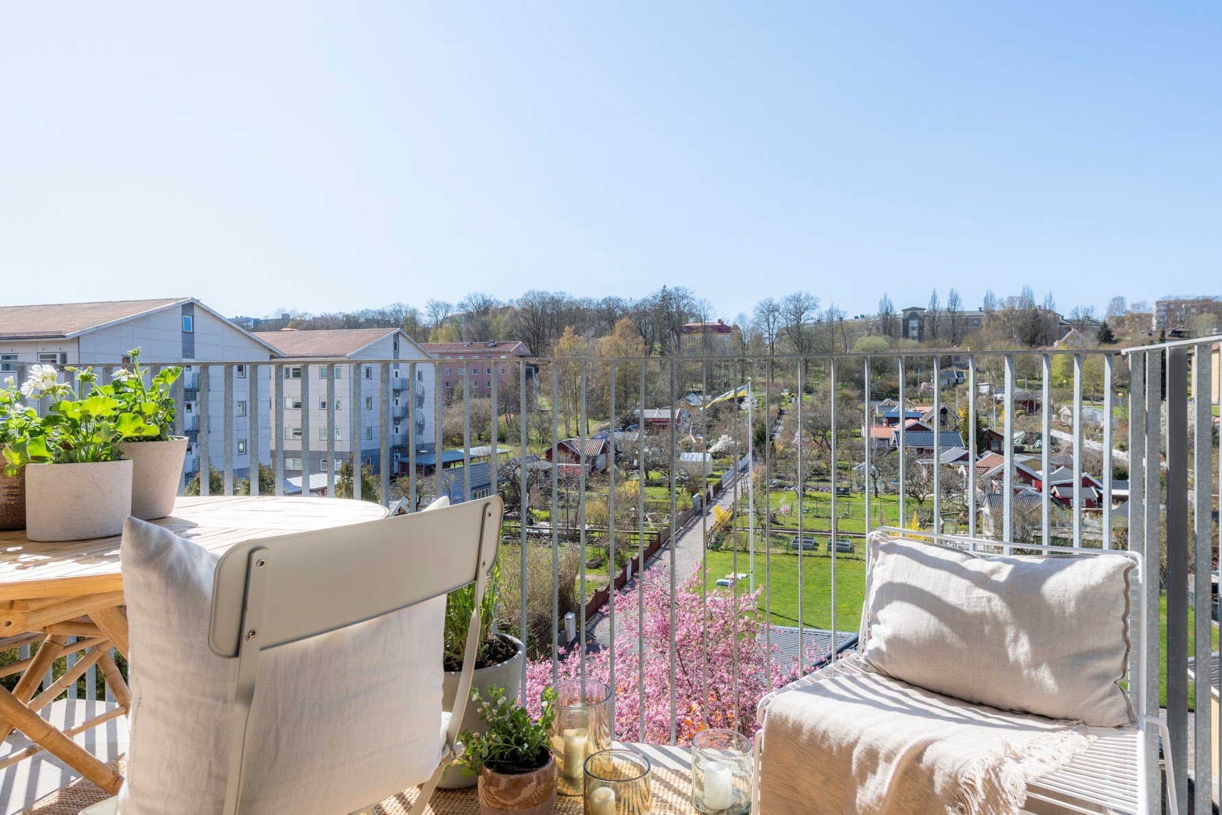 Gemensamma utrymmen:Föreningen är medlem i Almedals Terrassers samfällighetsförening till ca 55% där det ingår en takterrass på ca 165 kvm, miljörum, lusthus på gården, lekplats samt ett antal cykel och barnvagnsrum samt garage. Förråd finns till samtliga lägenheter i källaren.