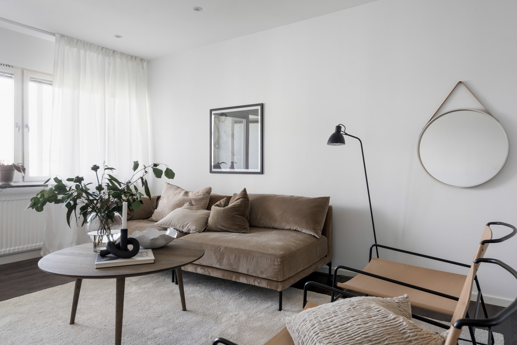 Ett par steg in till vänster finner ni det sociala och inbjudande vardagsrummet. Här erbjuds flera möbleringsalternativ med såväl soffgrupp, tv-bänk samt övrigt möblemang efter önskemål och behov. Stora fönsterpartier bidrar till ett fint ljusinsläpp. Härifrån har ni direkt utgång till den ljuvliga balkongen vars utsikt liknar en tavla. Den milslånga utsikten är slående och här ute får balkongmöbler plats.