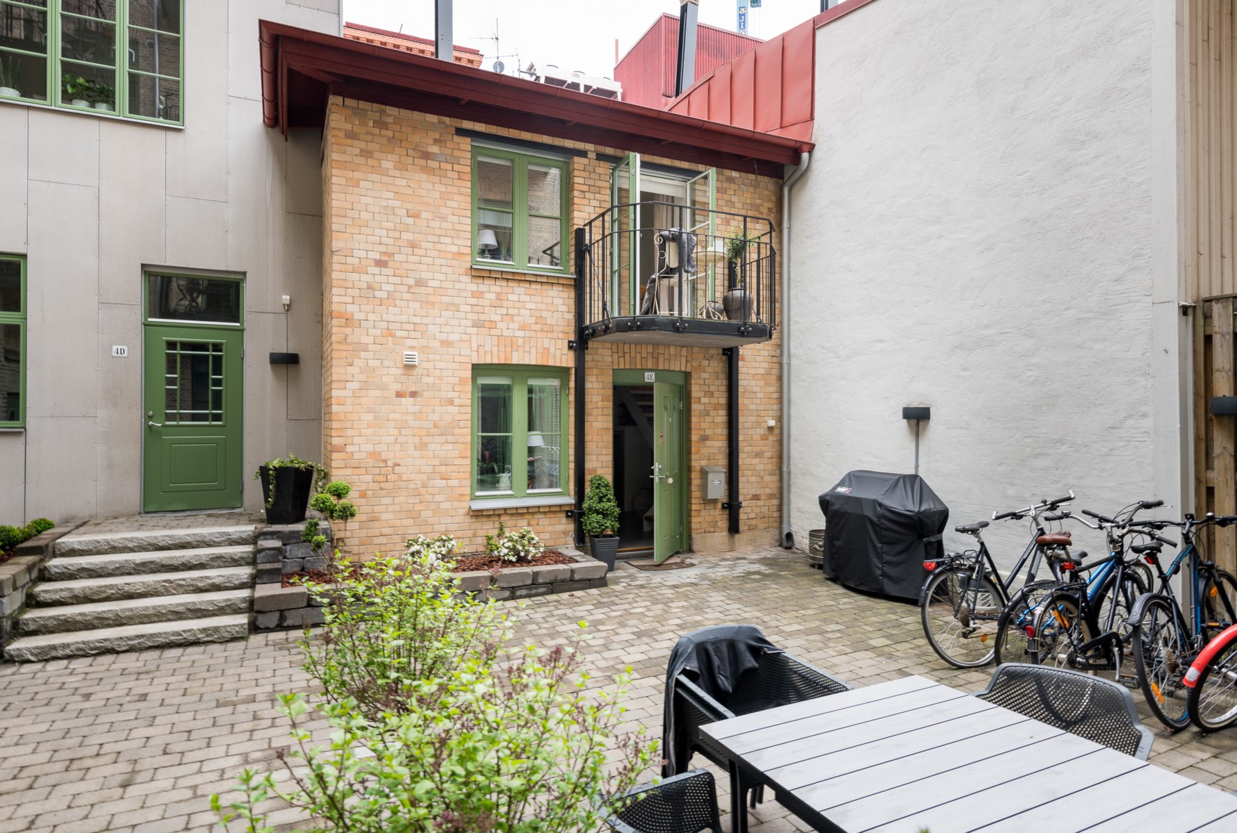 Gemensamma utrymmen:Föreningen har under 2019 rustat upp innergården med nya möbler och växter.