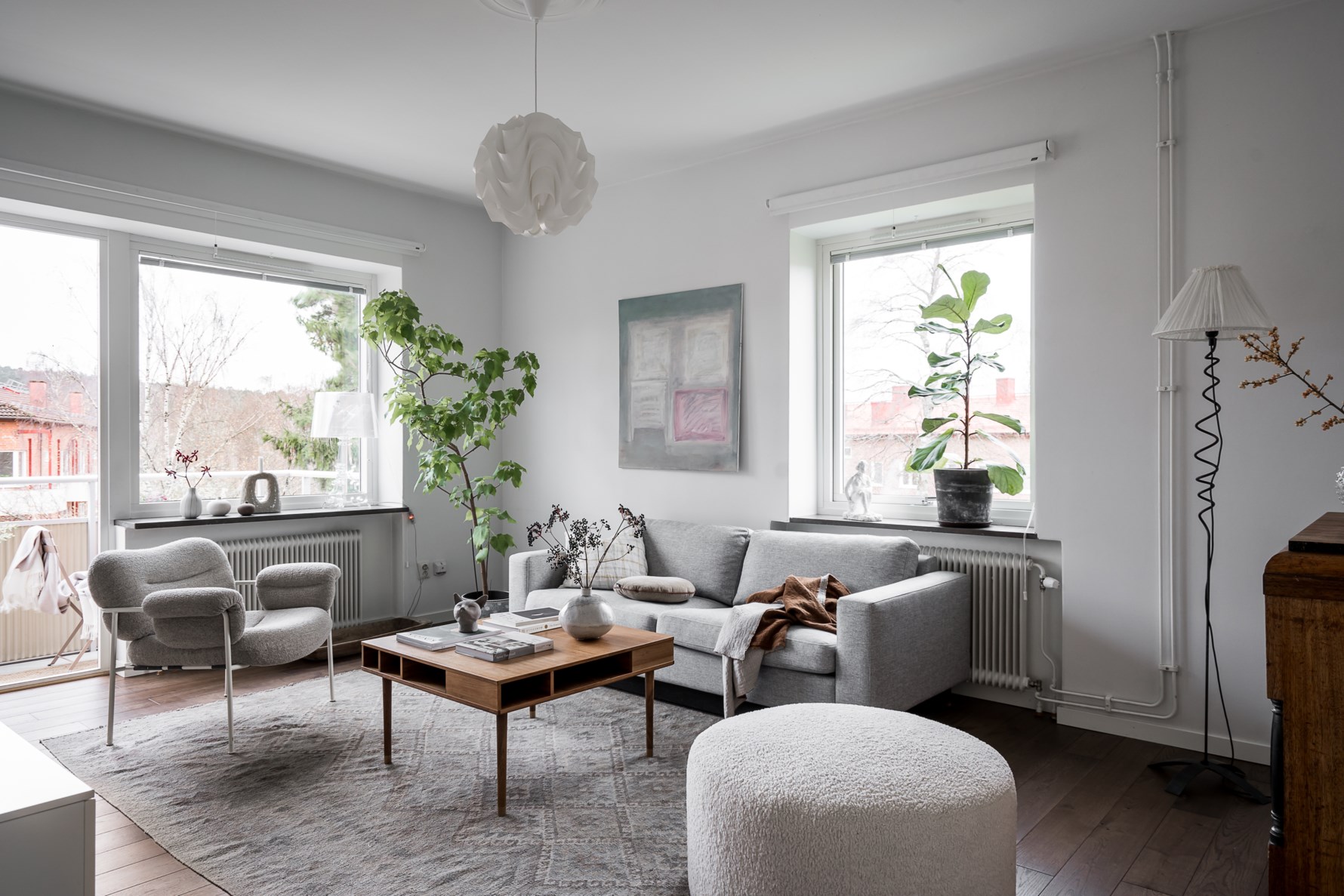 Ett par steg in möts ni av ett fint ljusinsläpp från rummens alla stora fönster som sprider sig i hela bostaden. Inbjudande och fint vardagsrum med mycket rymd och där flera möbleringsalternativ erbjuds. Ni får plats med såväl soffgrupp, tv-bänk, byrå samt övrigt möblemang. Från vardagsrummet har ni direkt utgång till den underbara söderbalkongen som med sitt höga och fria läge bjuder på utsikt över takåsar och grönska.