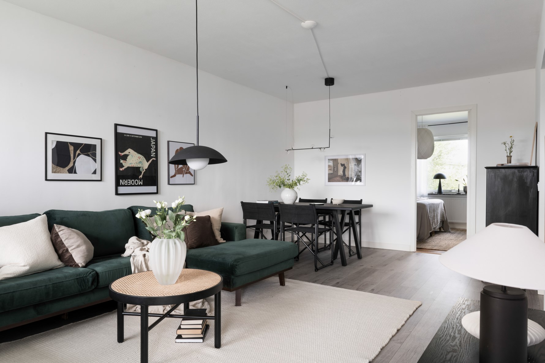 Vardagsrummet har ett stort fönsterparti som ger ett fint ljusinsläpp. Bra disponering och rymd vilket ger valmöjligheter till er inredning med exempelvis soffa, fåtölj och matsalsbord. Balkongen nås från kök och vardagsrum vilket bidrar med en luftig känsla och rymd till sällskapsytorna. Passar utmärkt att inreda med loungemöbler för att sedan få koppla av med några svalkande glas i det soliga söderläget.