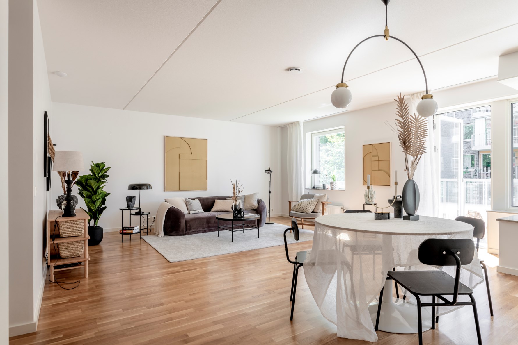 Lägenheten har generösa sällskapsytor med kök och vardagsrum i öppen planlösning som bjuder in till social samvaro och gemenskap med gott om plats för en större soffgrupp med tillhörande möblemang och matsalsbord. Stora fönsterpartier ger ett fint ljusinsläpp och härifrån nås även lägenhetens balkong i västerläge med lugna omgivningar.