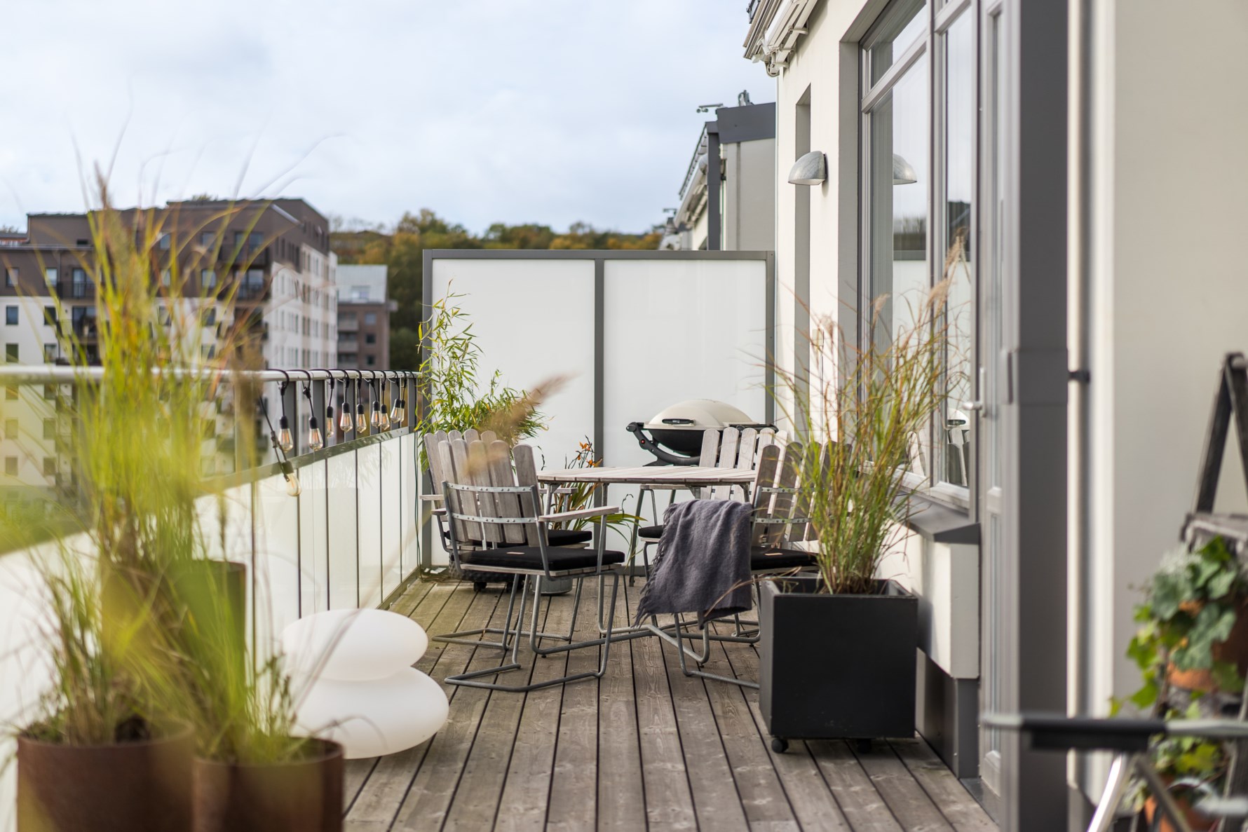 Terrassen är som ett rum i sig och här vistas man gärna oavsett årstid tack vara den påkostade markisen!