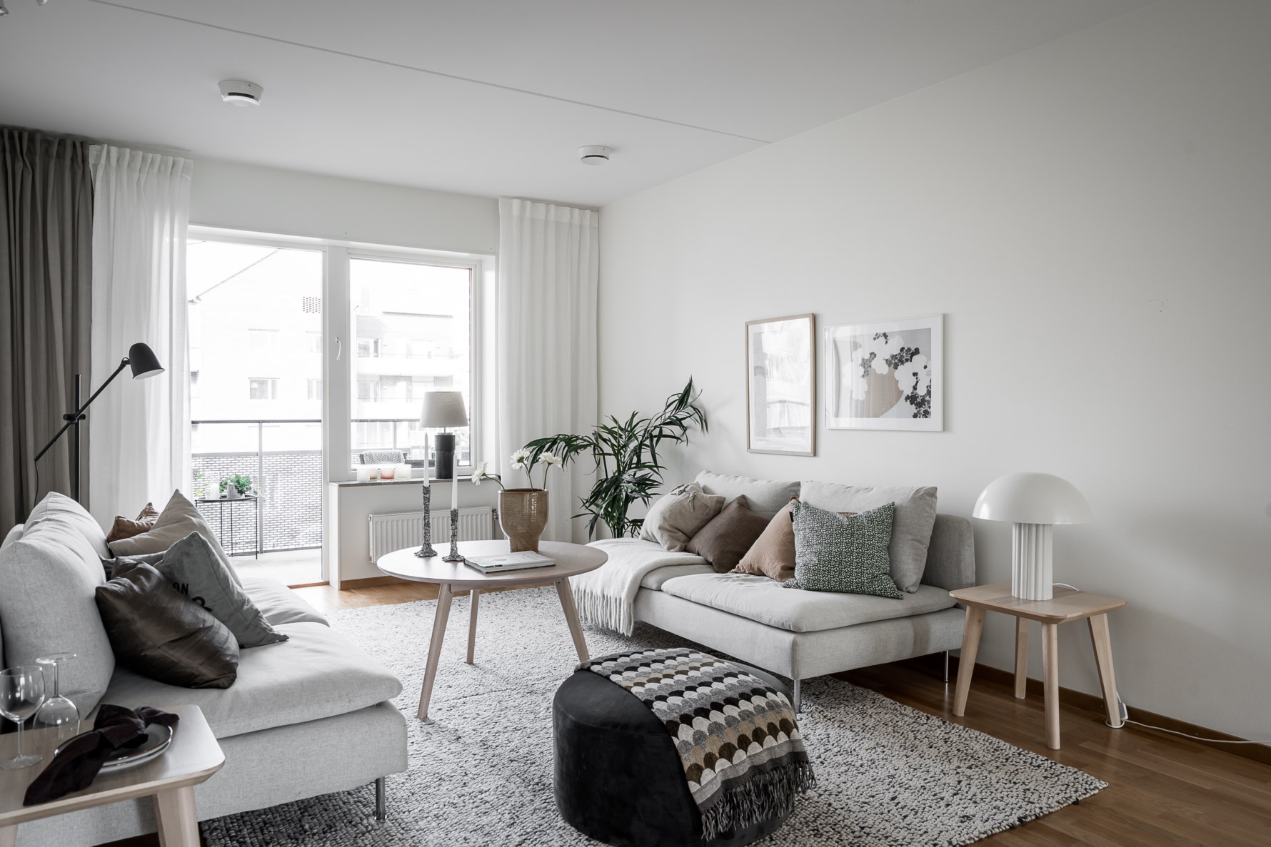 Bostadens inredningskoncept är både tidlöst och klassiskt.