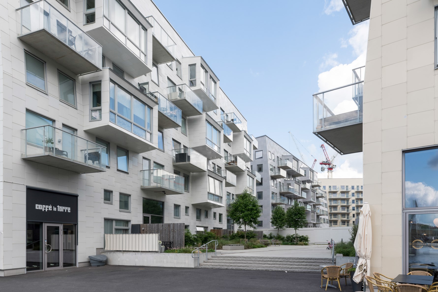 Rakt fram från hallen finner ni i det härliga vardagsrummet i öppen planlösning till köket. Här blir det en naturlig samlingsplats för vänner och familj, antingen via soffgruppen eller runt matsalsbordet. De ljusa ytskikten ger en stilren bas att inreda efter. Ett kliv och och den generösa balkongen nås. Här ute kan ni både ha loungegrupp samt bord med stolar och sitta ned och njuta av den magiska utsikten över hamninloppet.