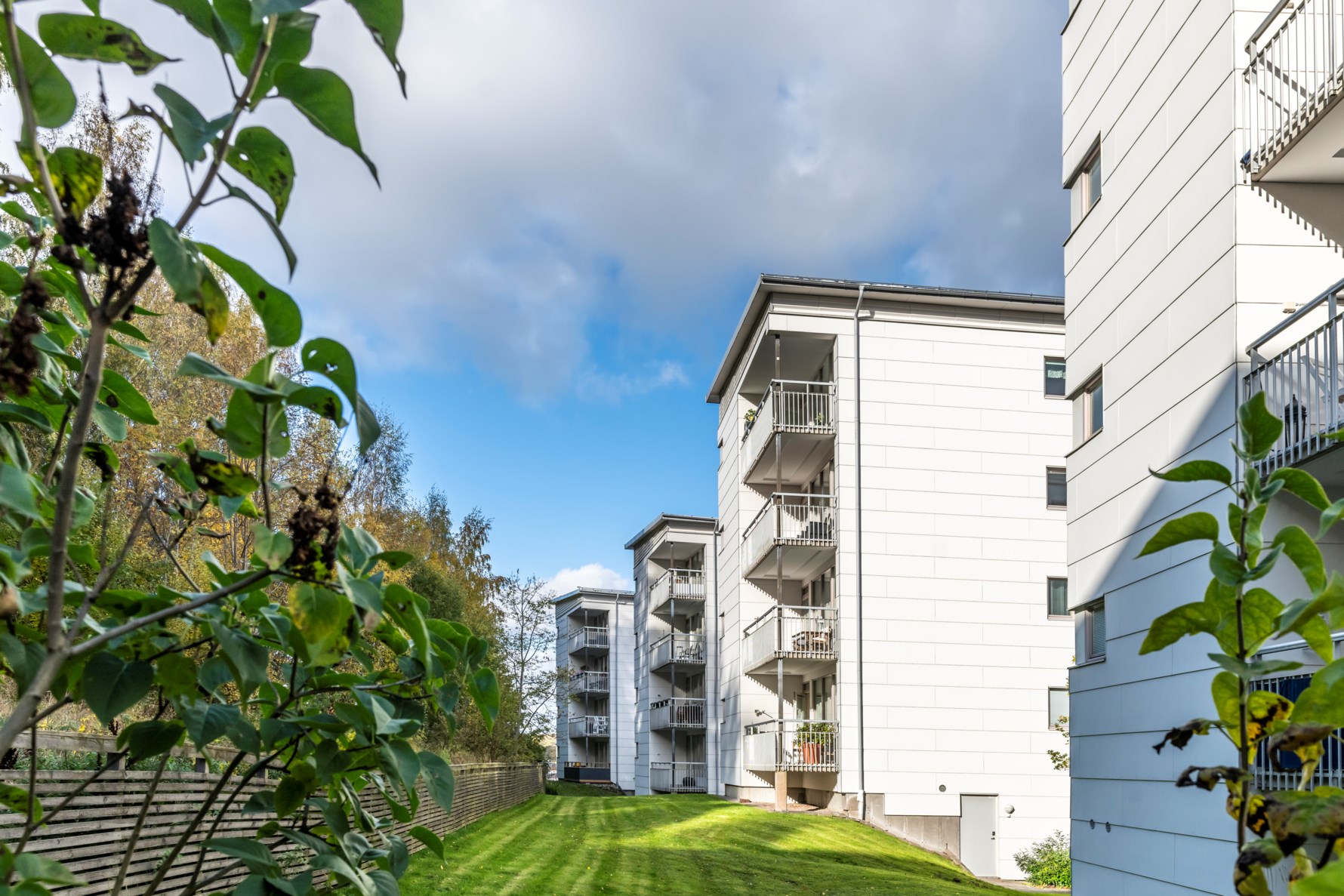 Lägenheten har tre sovrum i fil där det ljusa parkettgolvet skapar enhetlighet. Det största sovrummet har ett härligt gavelläge med fönster i två väderstreck och väggarna är målade i en ljus linnebeige ton. Här finns plats för dubbelsäng med tillhörande sängbord samt goda förvaringsmöjligheter i en hel garderobsvägg. Det andra sovrummet är målat i vitt tillsammans med fondtapet och inrymmer en större enkelsäng samt god garderobsförvaring. Det tredje sovrummet är vitmålat och även här ryms en enkelsäng och har bra förvaring i garderober.
