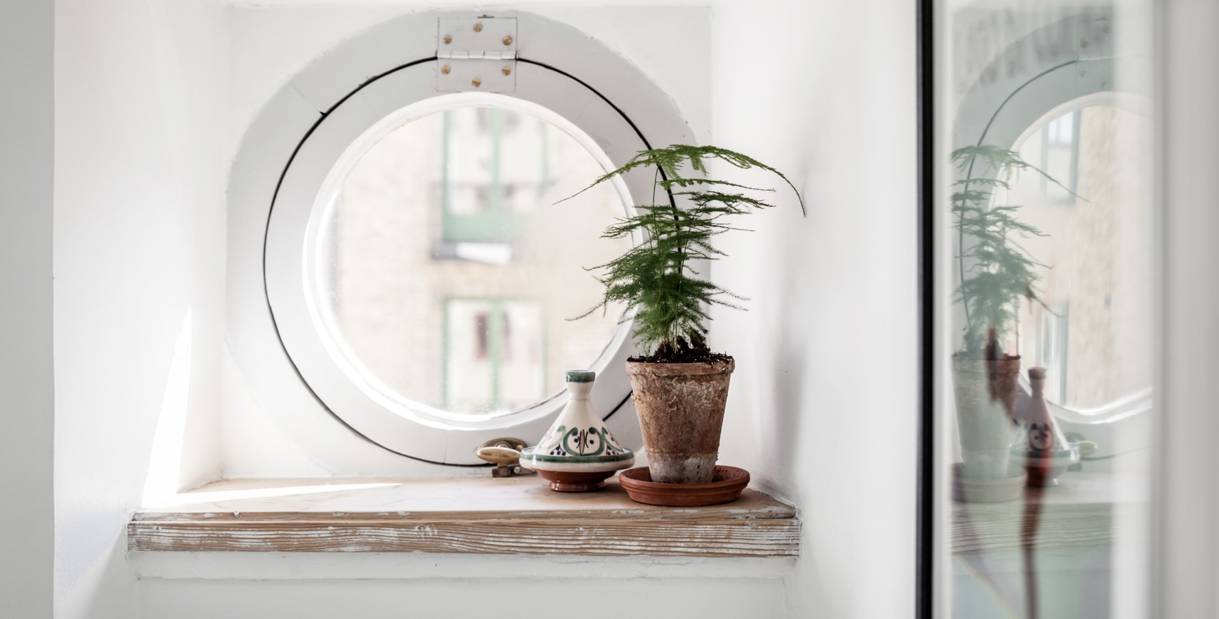 Väggar: Målade 2017, Jotun - 8281 Pale Linden. Vitmålad bröstpanel intill matplatsen.