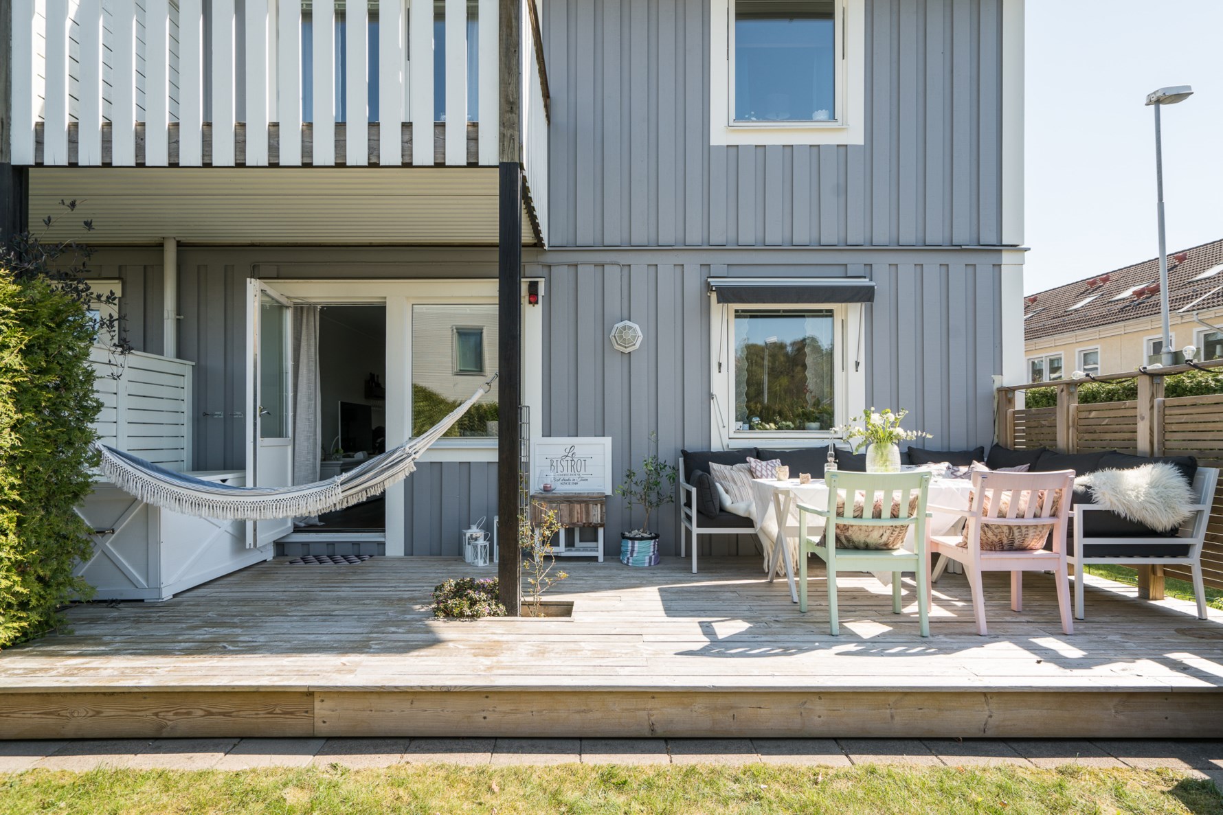 Ni välkomnas in i er alldeles egna trädgård med en mysig veranda precis utanför ytterdörren. Med en trädgård om ca 100 kvadratmeter har ni gott om utrymme för plantering och kreativitet. På verandan har ni en given plats att avnjuta morgonkaffet och samla energi inför dagen.