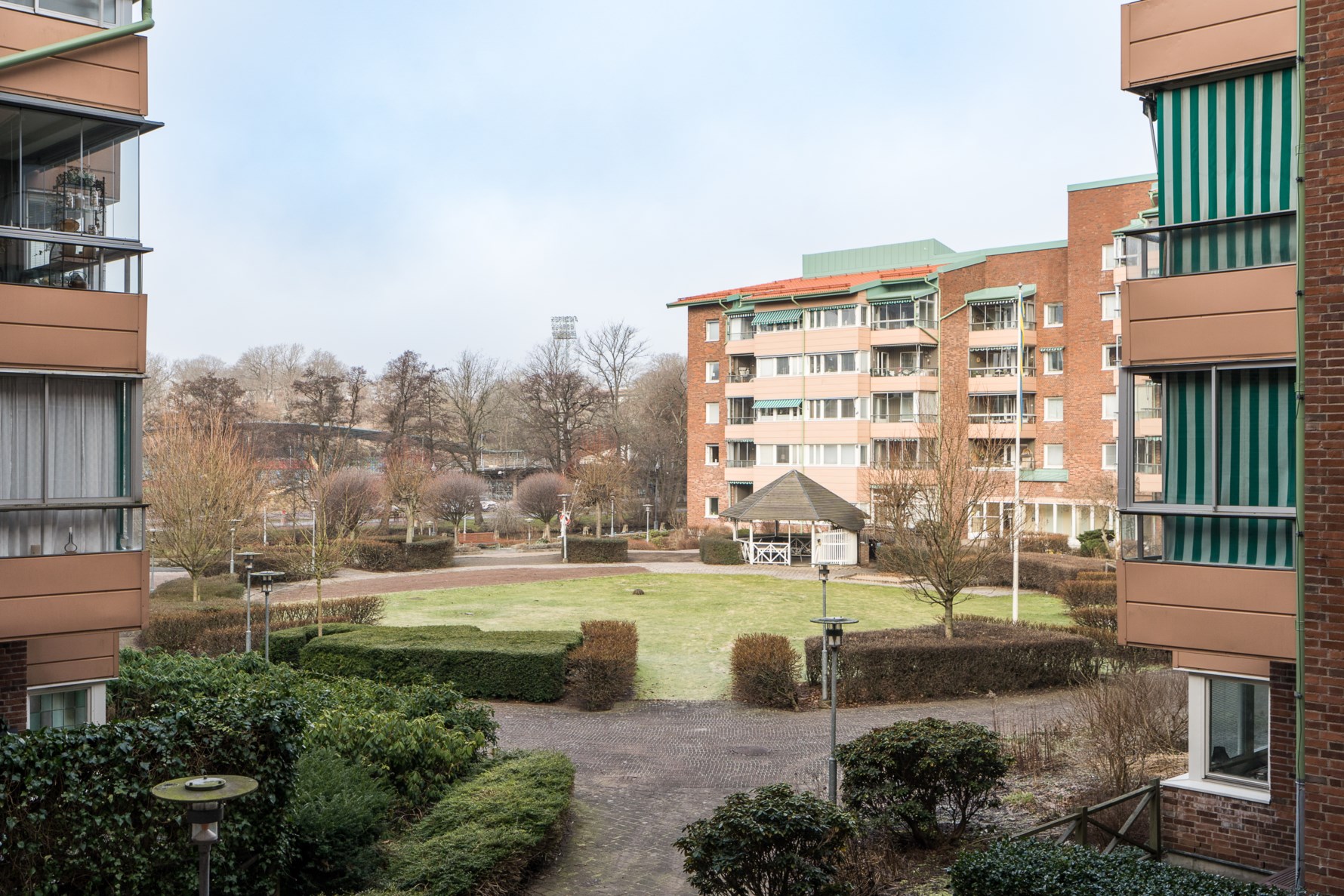 Allmänt om föreningen:Brf Tornhuset registrerades år 1984 och köpte år 1985 fastigheten Gårda 27:1. Fastigheten består av 8 flerbostadshus som stod klara 1986. Byggnadernas totalyta är enligt taxeringsbeskedet 10 208 kvm fördelade på 121 bostäder med en sammanlagd yta om 7 944 kvm samt lokaler med en yta på 2 264 kvm. Lägenheterna är fördelade på 58 st 2 rok, 56 st 3 rok samt 7 st 4 rok. Husen byggdes i en hästskoform runt klocktornet till kontorsbyggnaden på en av de gamla fabrikstomterna i en unik miljö i Gårda.