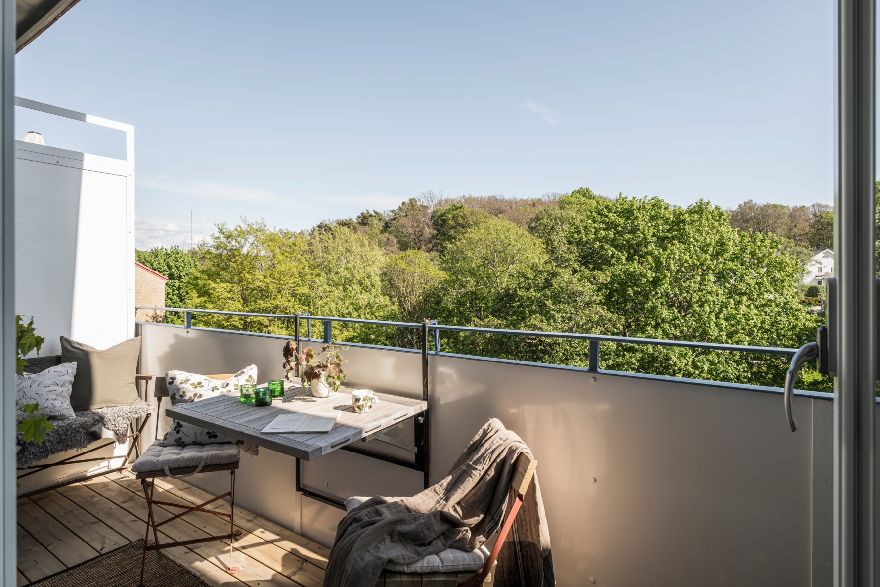 Om ni fortsätter rakt in kommer ni in till det underbara rummet som kombinerar matsal och vardagsrum. Tack vare fönster i två väderstreck bjuder rummet på otroligt ljusinsläpp. Vardagsrumsdelen rymmer med enkelhet plats för stor soffgrupp och tv-hörna. Härifrån tar ni er ut på den magiska balkongen i söderläge som bjuder på många soliga timmar. Här ute ryms plats för en mindre matgrupp samt en soffmöbel. Mellan vardagsrum och matsal finner ni en vacker öppen spis som förgyller vinterhalvårets mörka kvällar. Matsalsdelen rymmer plats för stort bord med flertalet stolar. Tack vare att rummen ligger i fil och har öppet emellan så skapas ett hem som är optimalt för sociala tillställningar och stora middagsbjudningar. Den vackra fiskbensparketten gör sig fint mot de tapetserade väggarna.