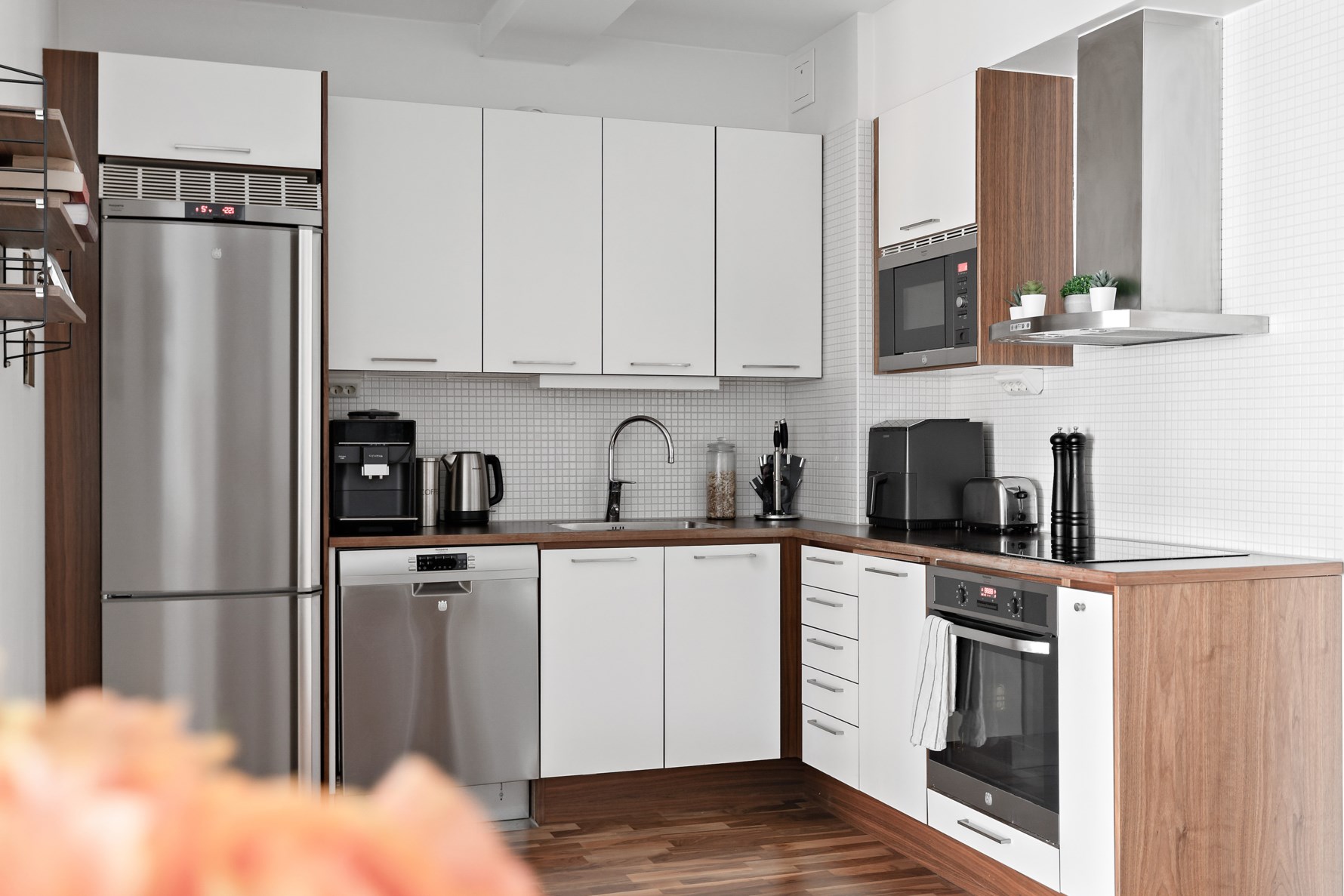 Det stilrena Vedumköket bjuder på snygga detaljer och genomarbetade materialval som ger en modern och tilltalande känsla. Maskiner från Husqvarna såsom kyl/frys, spishäll med ugn, diskmaskin samt microugn. Här finns gott om förvaring och arbetsytor, samtidigt som köket samspelar fint med vardagsrummet i en öppen och social planlösning – perfekt för både vardag och umgänge.