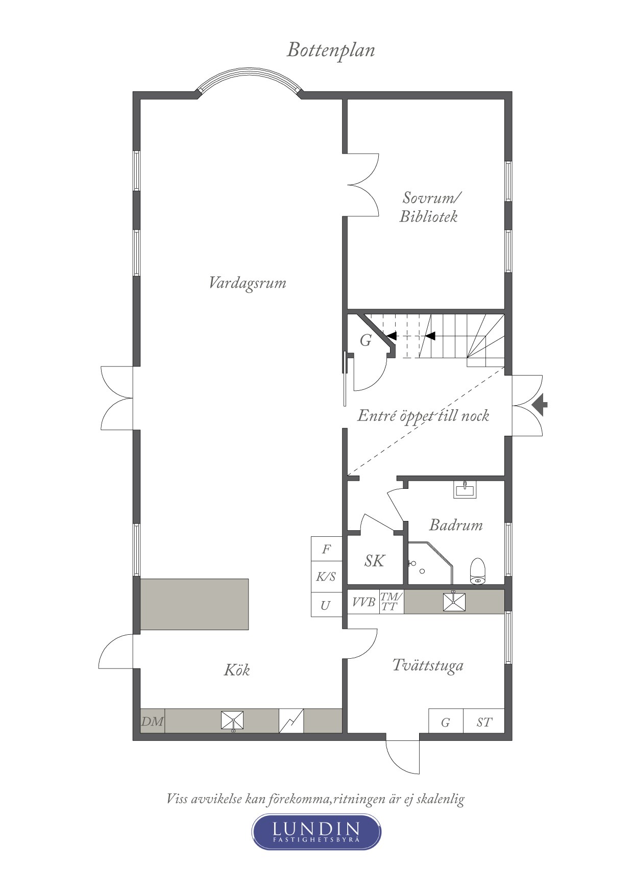 Via entréhallen nås det inbjudande och luftiga vardagsrummet. Ett ljust och harmoniskt rum med herrgårdskänsla. Vackra fönster med spröjs och vitmålade lister framhäver de djupa fönsternischerna och ger fint ljus till rummet. Här finns gott om plats för både soffgrupp och favoritfåtöljen där en god bok kan avnjutas. Golvet har enstavig parkett i borstad mattlackad ek som går i ett med köket och matsalen och rummet som ligger i fil med vardagsrummet. Den genomgående planlösningen gör solens strålar närvarande. Om så önskas kan kamin installeras i vardagsrummet för att få ytterligare en mysfaktor. Golvet är förstärkt och friskluftsintag är förberett för att kamin ska kunna installeras. Från vardagsrummet har ni även utgång till trädgården.