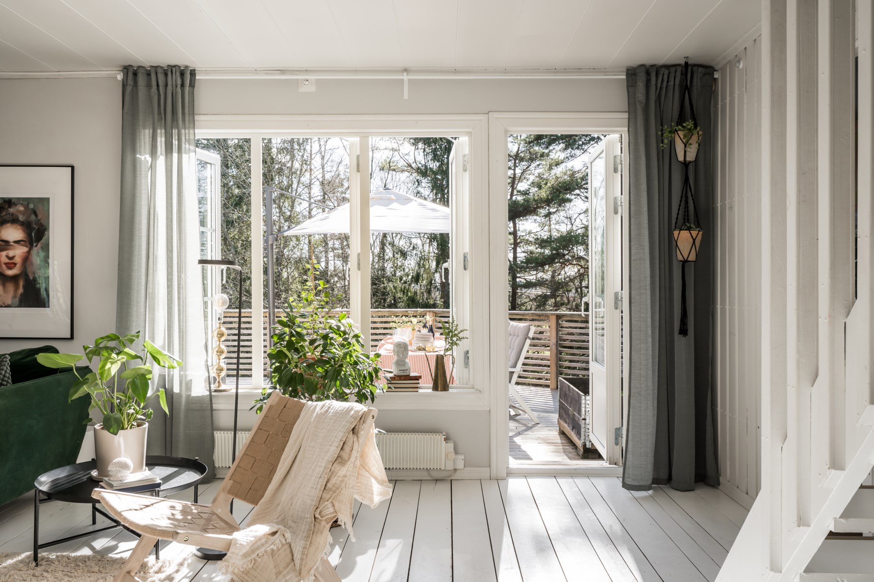 Vardagsrummet är stort och rymmer både matplats och soffgrupp, perfekt för umgänge med familj och vänner. Här finns även en täljstenskamin som förutom mysfaktorn värmer upp huset väldigt effektivt. Från vardagsrummet har du utgång till en stor altan i bästa solläge.