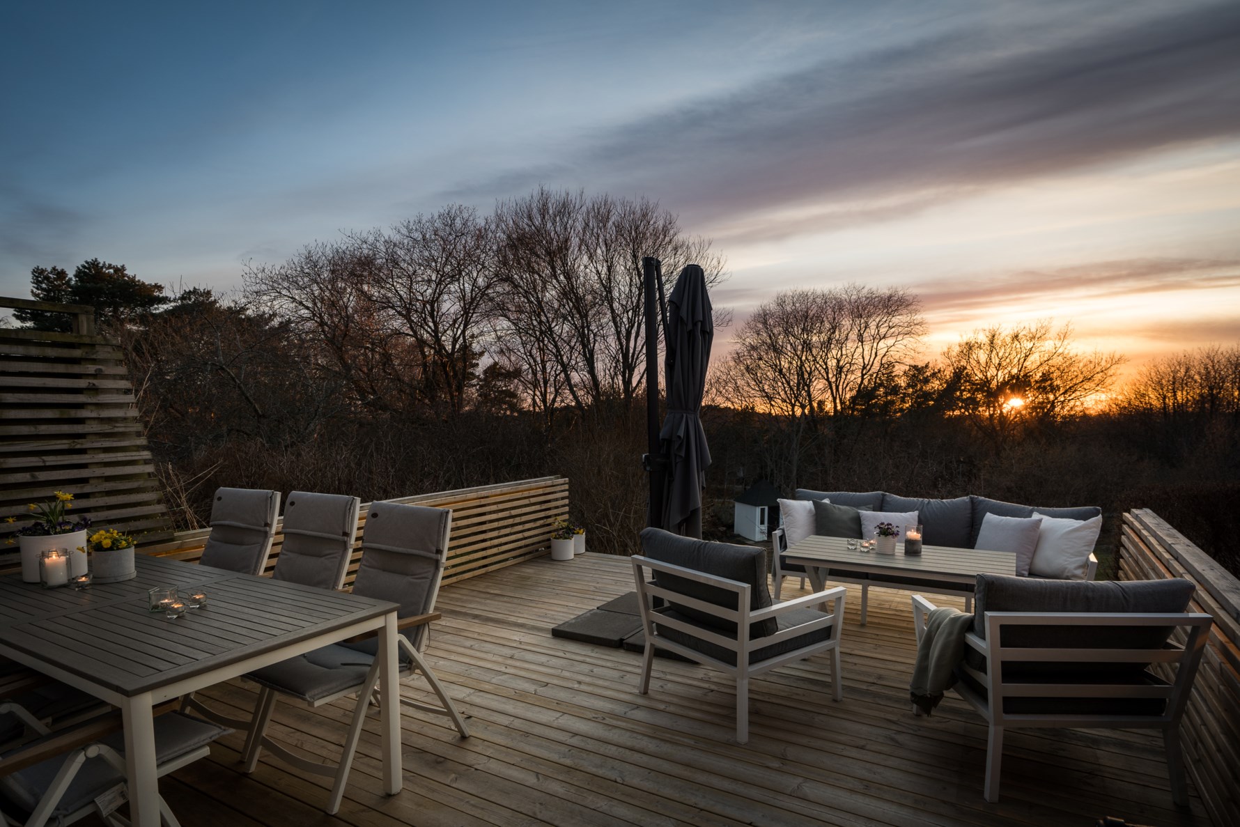 Här finns även en övre hall med förvaringsmöjligheter i garderober samt separat wc med handfat.