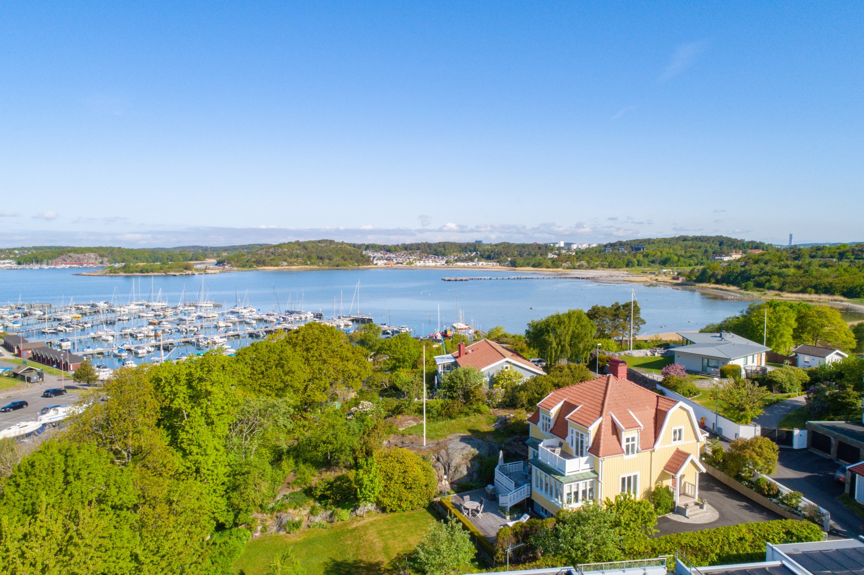 Det spatiösa köket har plats för många kockar och socialt umgänge och här finns braskamin i arbetshöjd och dessutom vattenburen golvvärme. Från övre plan finns det två trappor som ansluter i både östra delen vid entrén och västra delen vid köket ner till entréplan. Det stilfulla trapphuset mot trädgården och hamnen har vackra fönster som släpper in ljuset och solen.