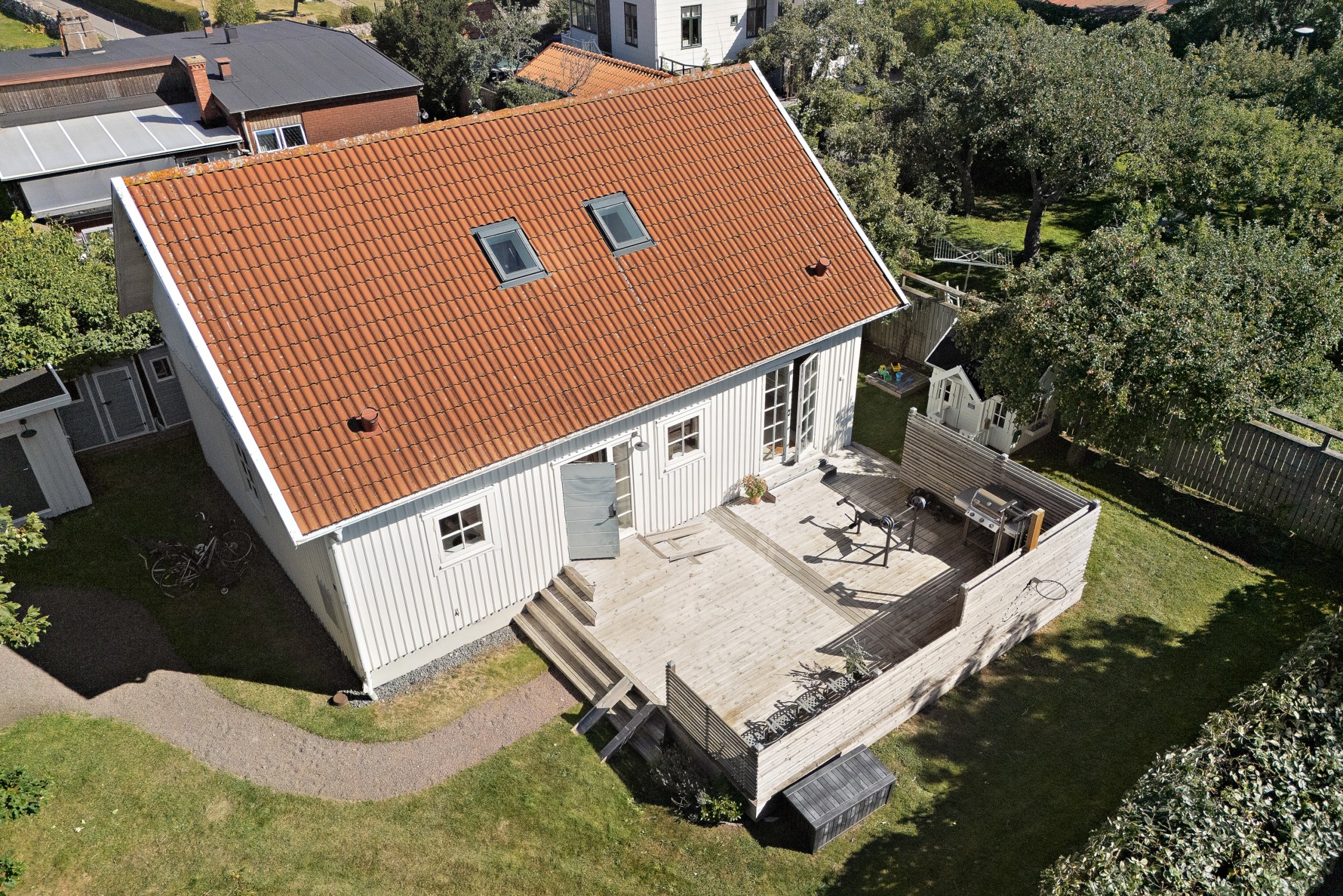 Tre sovrum varav ett stort med två fönster och platsbyggd garderobsförvaring. Även detta rum går enkelt att dela av till ytterligare sovrum för den som vill. Samma fina golv i massiv furu även på övervåningen.