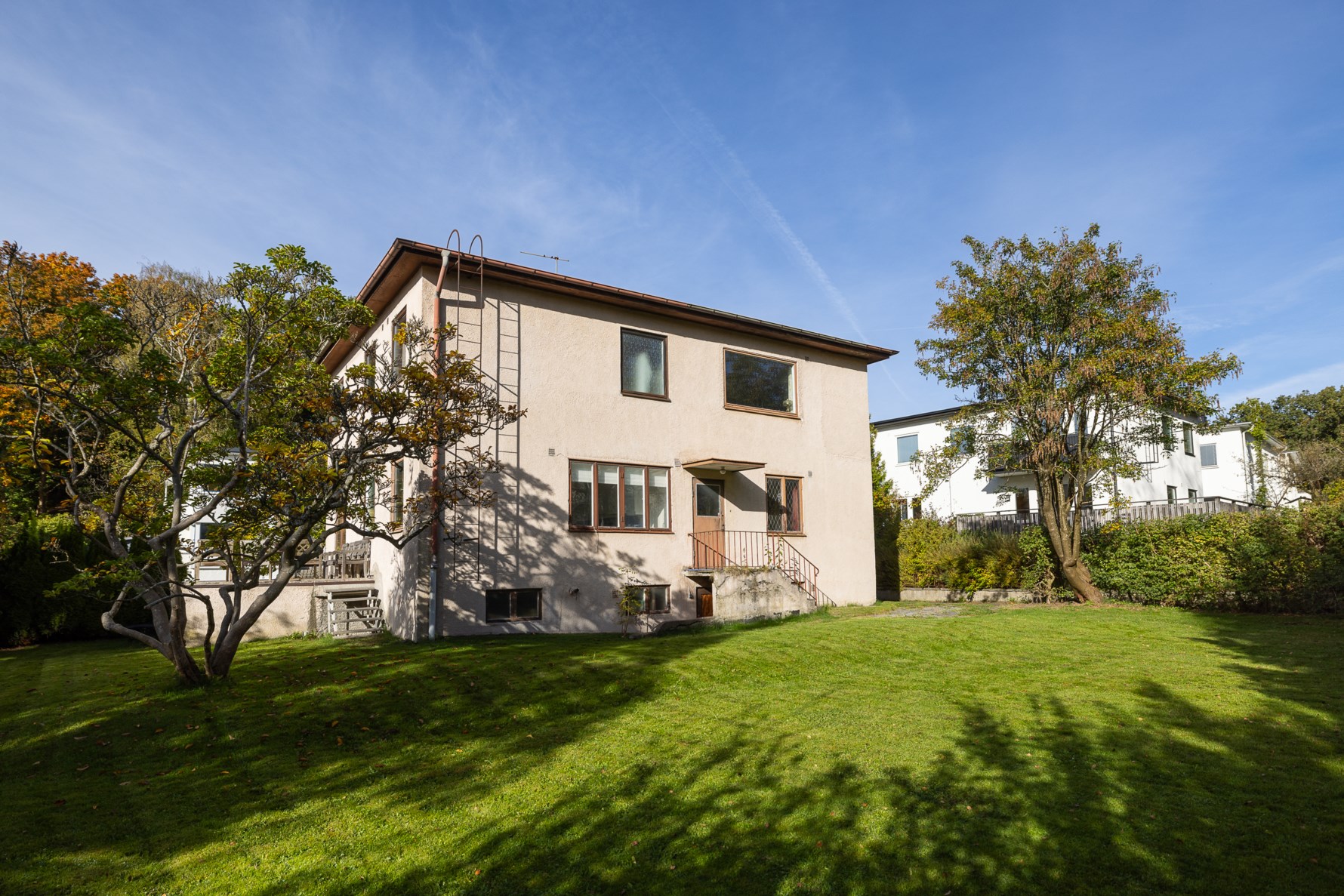 Skårsgatan 80 erbjuder en unik möjlighet att återställa bostaden till sitt ursprungliga utförande och därmed skapa ett extraordinärt, arkitektritat hem utöver det vanliga. Huset uppfördes som visningshus och är ritat av arkitekten Börje Eliasson, som med stor omsorg lade vikt vid varje detalj för att förverkliga sin vision. Inget av dessa hus är det andra likt, och på Skårsgatan 80 finns fortfarande många av de ursprungliga, karaktärsfulla detaljerna bevarade.