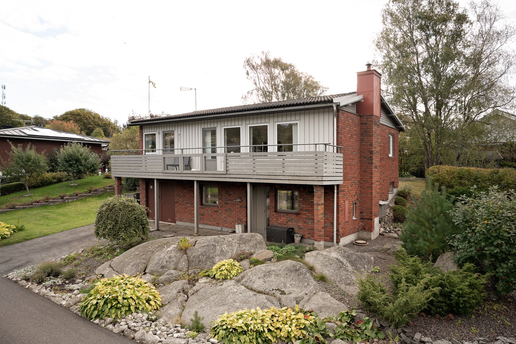 Åt andra hållet öppnas dörr mot en underbar uteplats och trädgård, insynsskyddad och lugn – en grön oas som förlänger vardagsrummet sommartid.